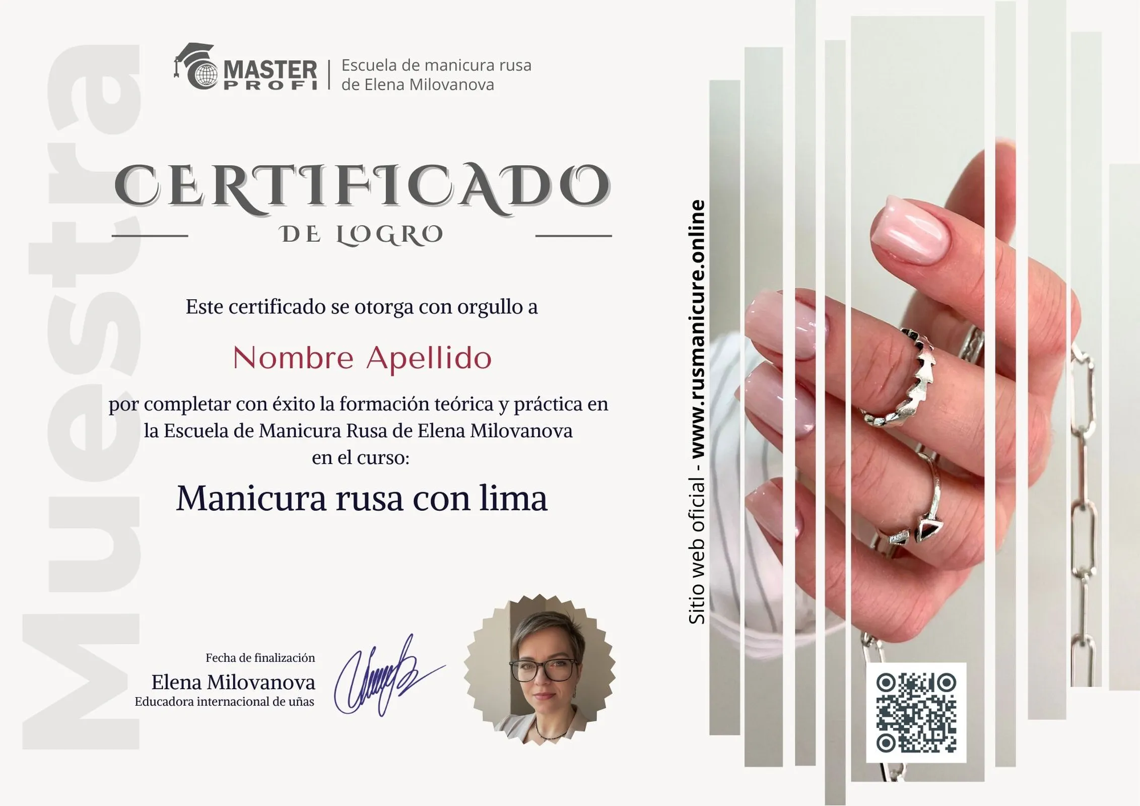 🔎 Cada certificado confirma tu calificación y fortalece tu autoridad como Instructora Certificada en Manicura Rusa.